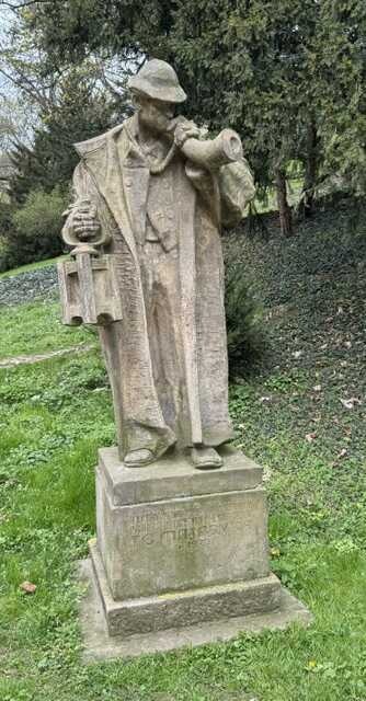 Za tunelem potkávám sochu Ponocného – vytvořenou žáky umělecké školy v Hořicích podle návrhu Františka Úprky. V roce 1925 ji město věnovalo T. G. Masarykovi k jeho 75. narozeninám.
