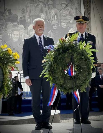 je mi ctí, že se spolu s Vámi všemi mohu zúčastnit letošních Slavností svobody zde v Plzni. Slavností, které jsou připomínkou osmdesátého výročí osvobození západu naší země americkou armádou a také připomínkou osmdesátého výročí ukončení druhé světové války. Války, která přinesla více než 60 milionů obětí na životech a obrovské škody ve velké části světa. Války, která na více než 40 let rozdělila Evropu, a teprve koncem 80. let došlo k jejímu částečnému sjednocení. A také války, která vedla k prozření nejenom nás, ale i našich spojenců, že politika appeasementu, neboli ústupků agresorům, se krvavě nevyplácí.