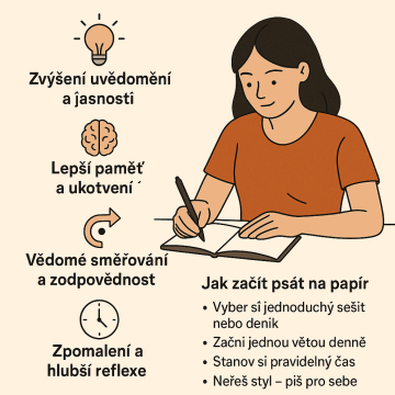 - Myšlenky v hlavě bývají chaotické a neuchopitelné, ale psaním je zpřehledníš a ujasníš si, co opravdu chceš nebo cítíš.